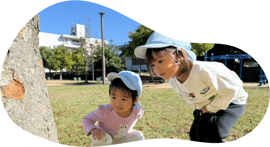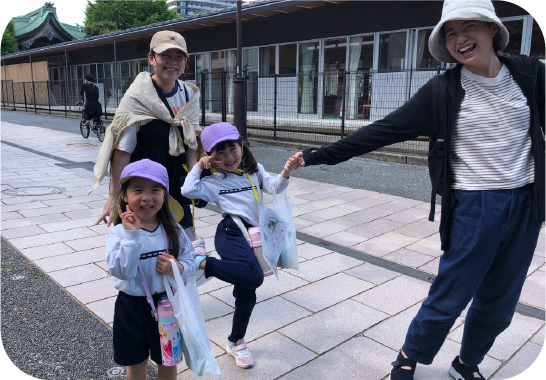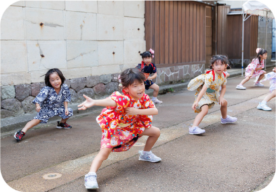 園周辺でウォークラリーを行なっています。チェックポイントでは様々なお題があり、親子で協力して進んでいきます。その中で他のご家庭や地域の方との交流もあり、街の雰囲気を味わうことができます。