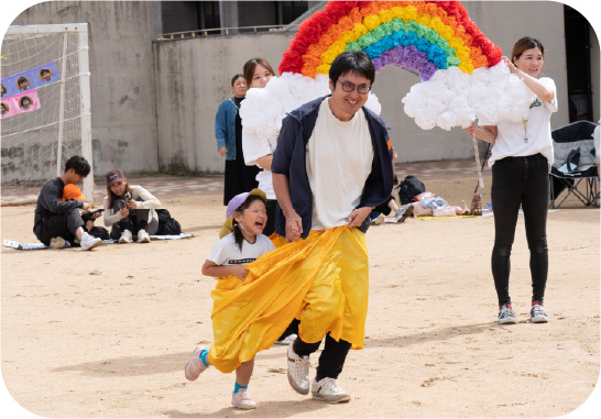 以上児、未満児それぞれ年に1度行われています。普段、お父さま同士で話し合う機会が少ないですが、雑談を交えながら気軽に子育てについて話し合うことができる場です。話し合いの他には、お子様と一緒に園の玩具に触れて遊んだり、玩具作りをしたりすることがあります。